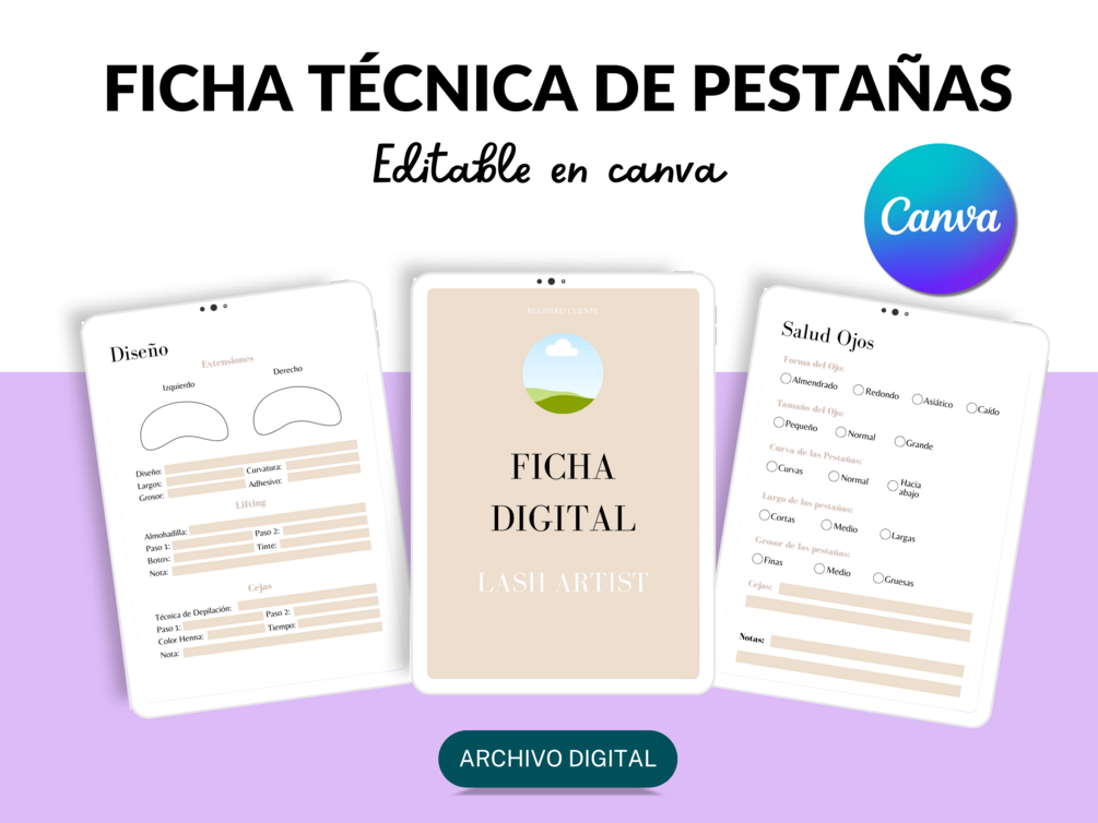 Plantilla CANVA - Ficha de Pestañas (Lifting y Extensiones)